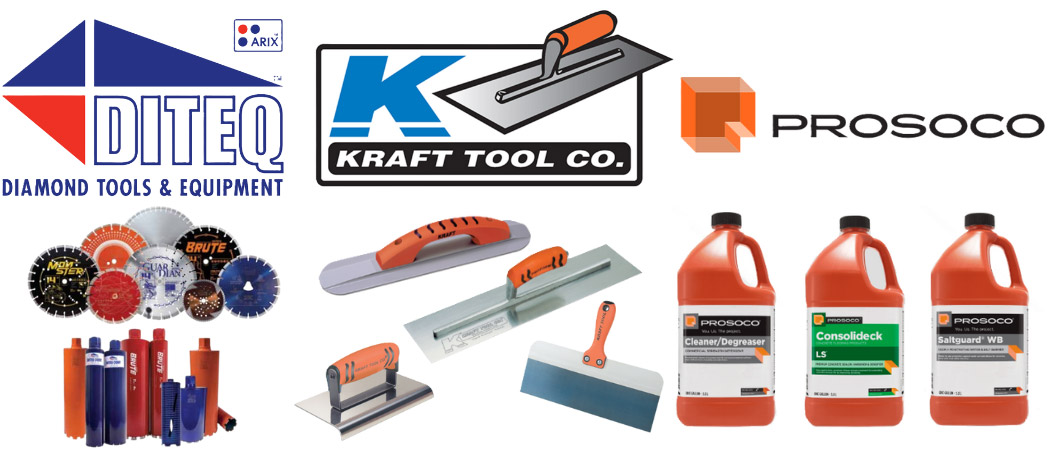 Get the best concrete and construction tools in the industry for your job! We are a dealer for Kraft, Diteq and Prosoco.